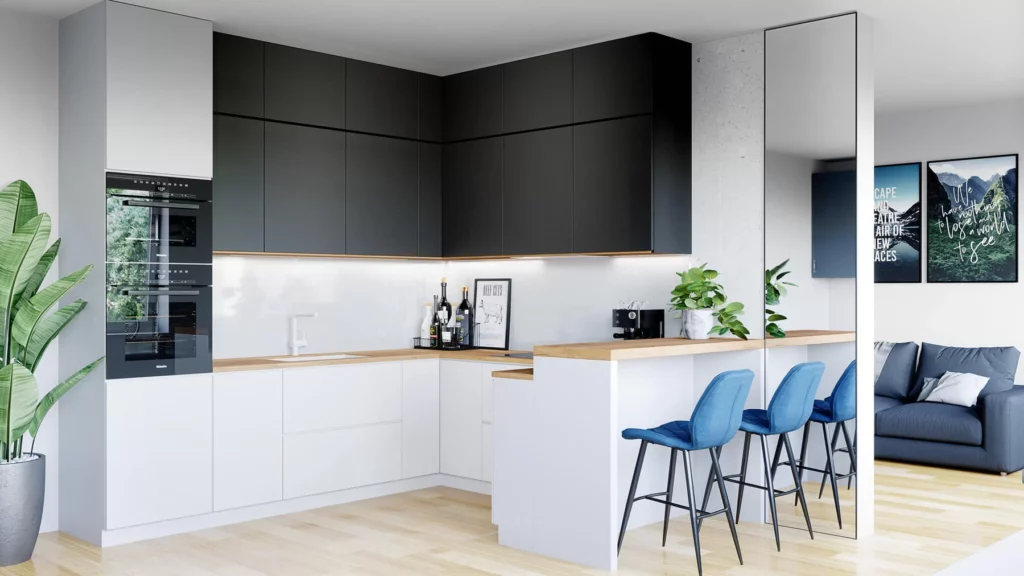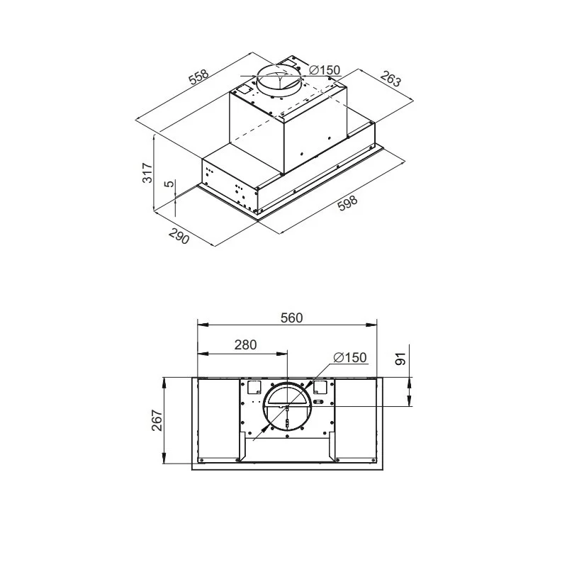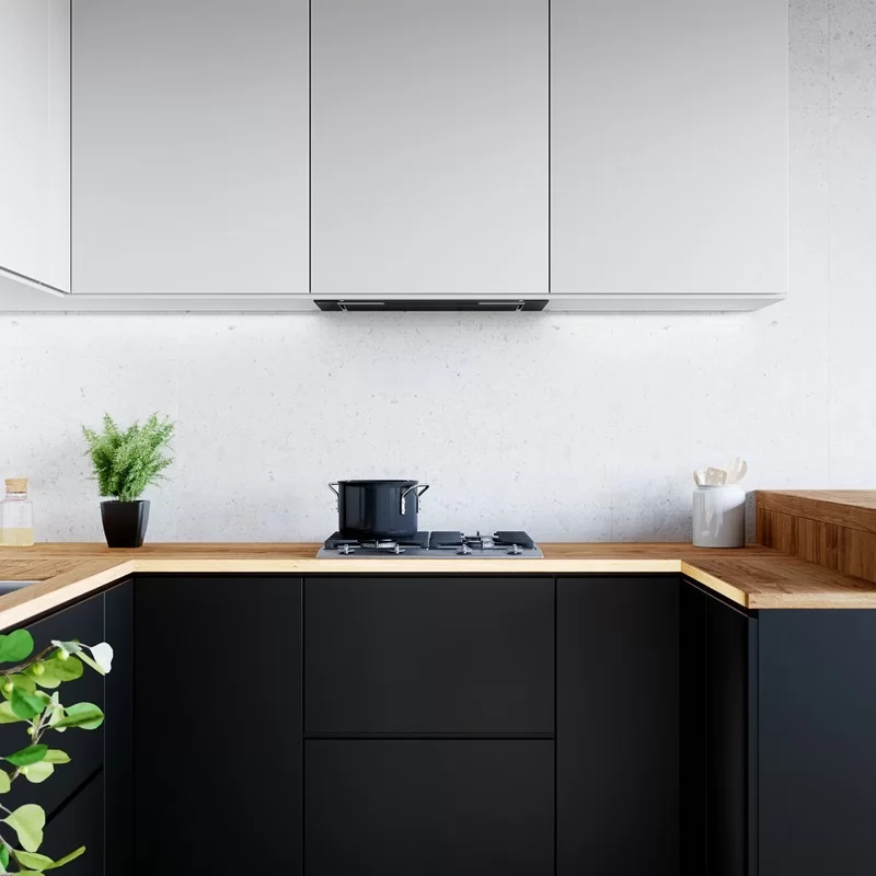 Okap bezsilnikowy do zabudowy, odpowiedni do połączenia z wentylatorem dachowym VILPE i działania w systemie Cichej Kuchni.