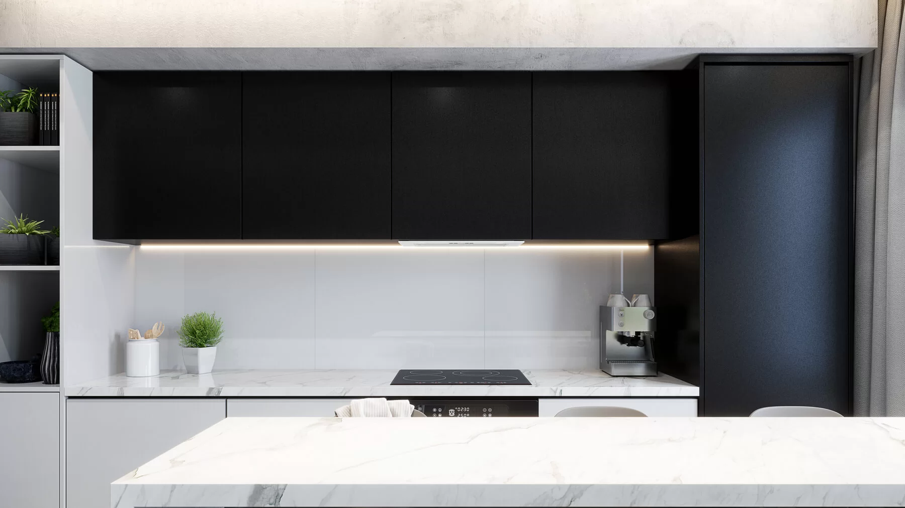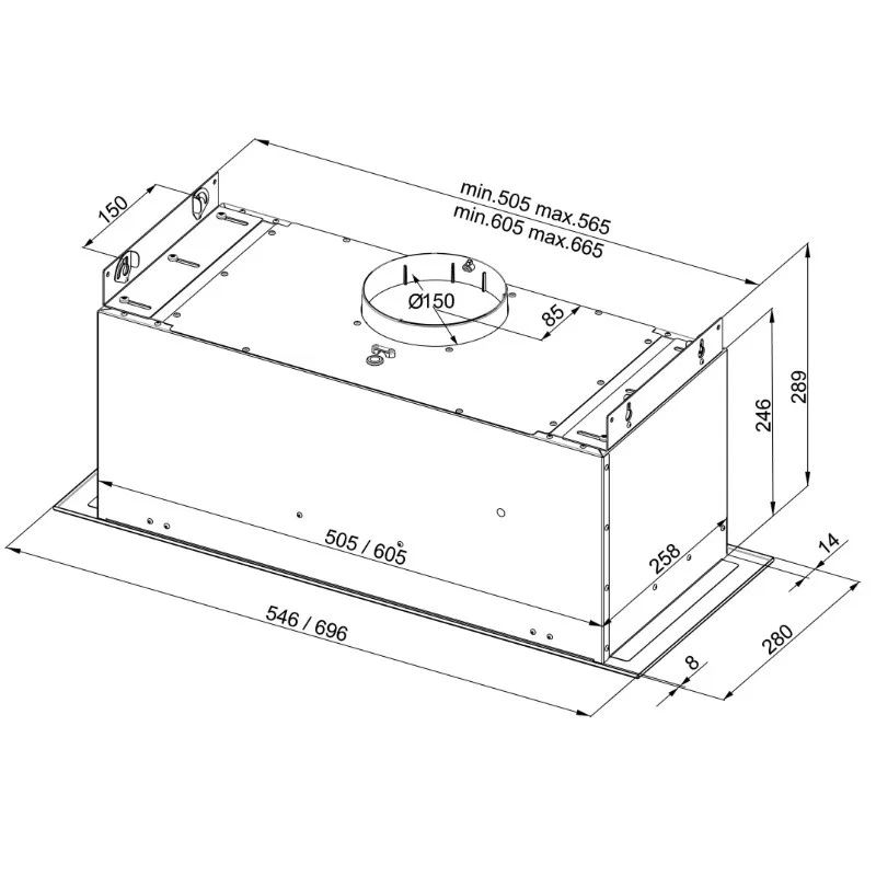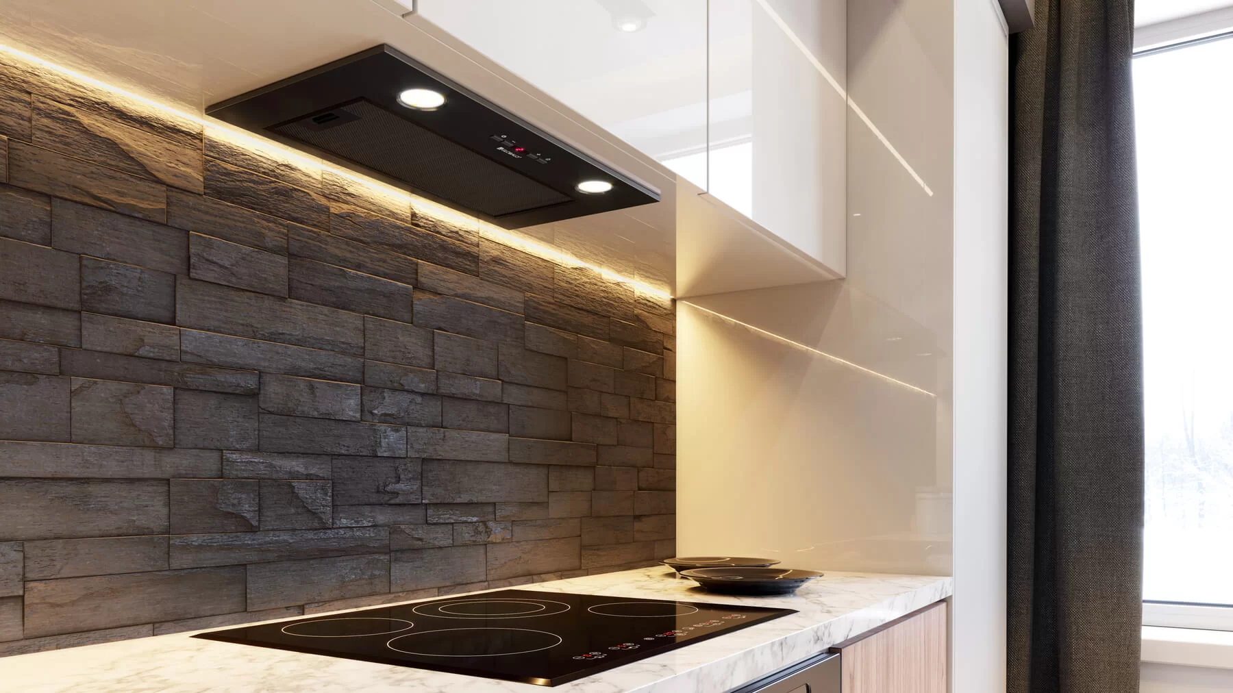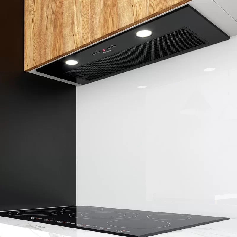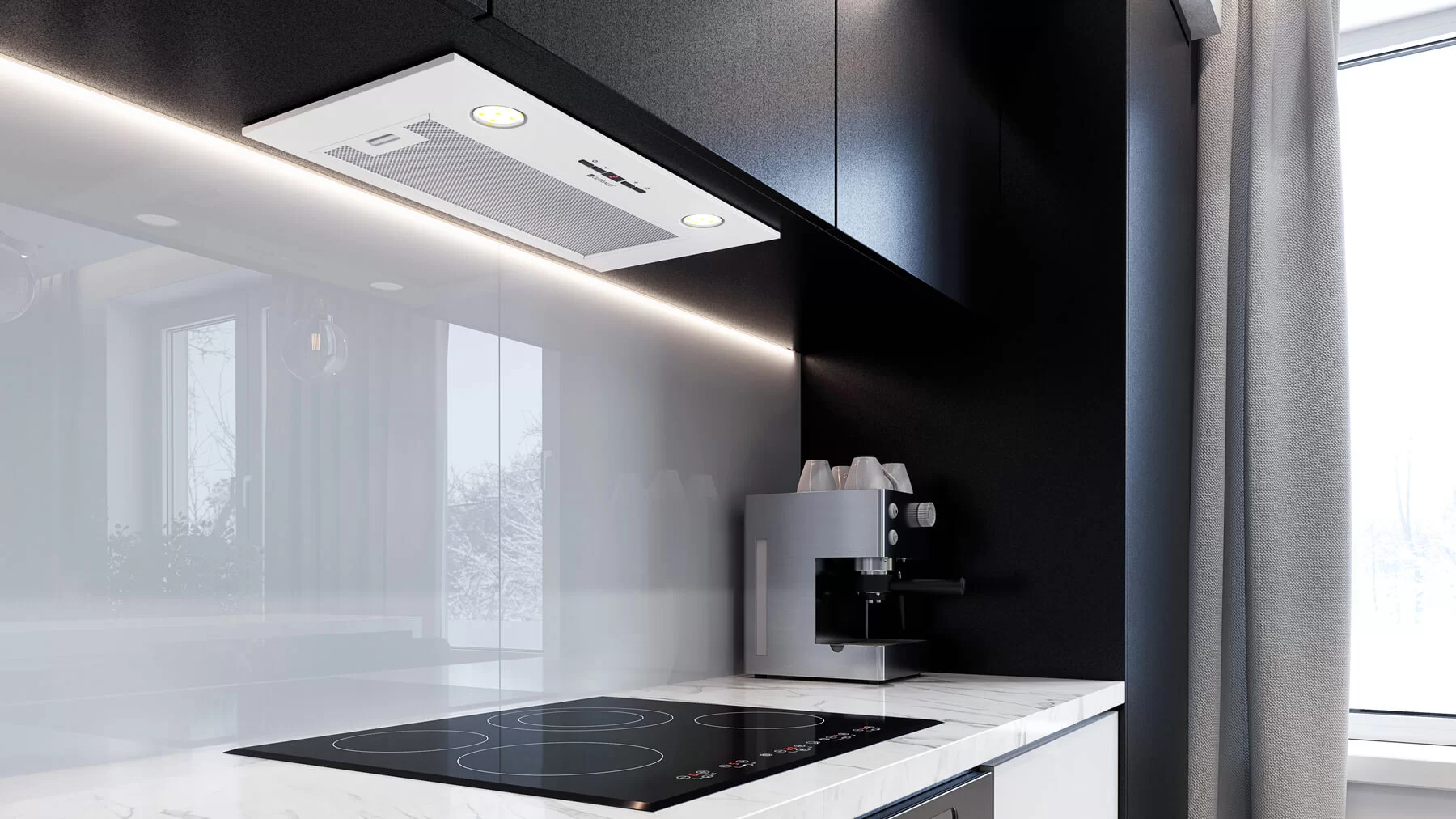 Okap bezsilnikowy do zabudowy, odpowiedni do połączenia z wentylatorem dachowym VILPE i działania w systemie Cichej Kuchni.