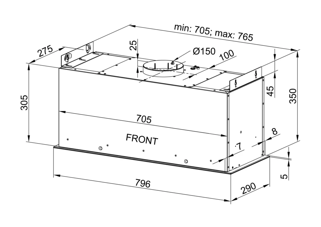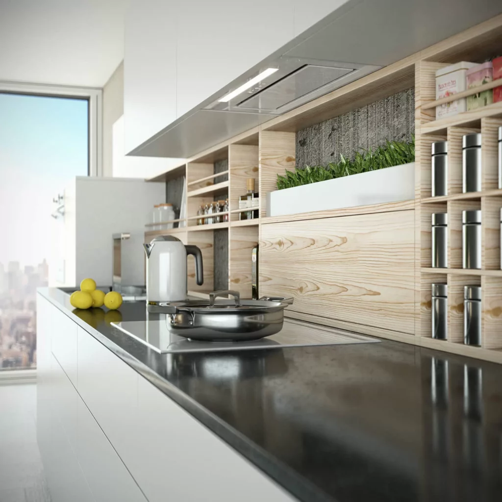 Okap bezsilnikowy do zabudowy, odpowiedni do połączenia z wentylatorem dachowym VILPE i działania w systemie Cichej Kuchni.