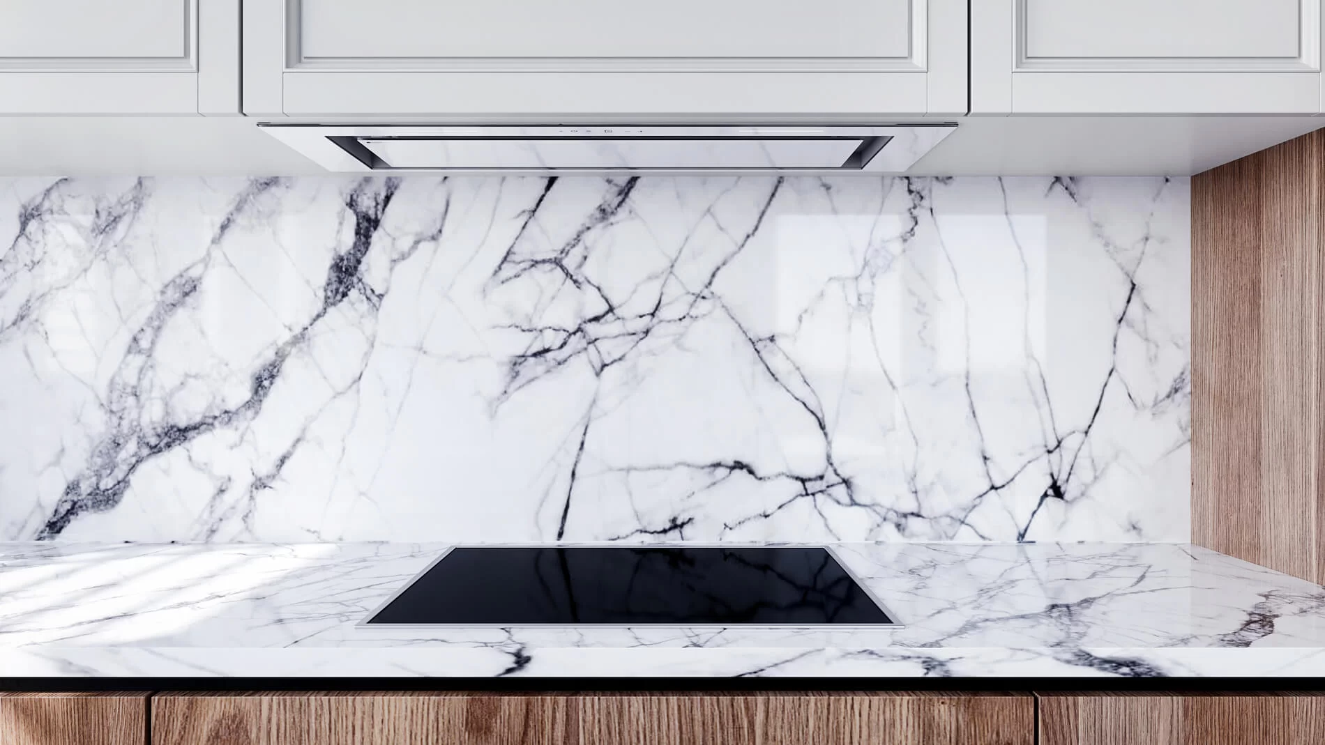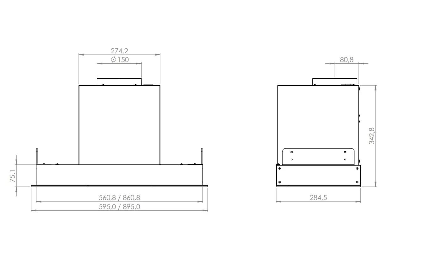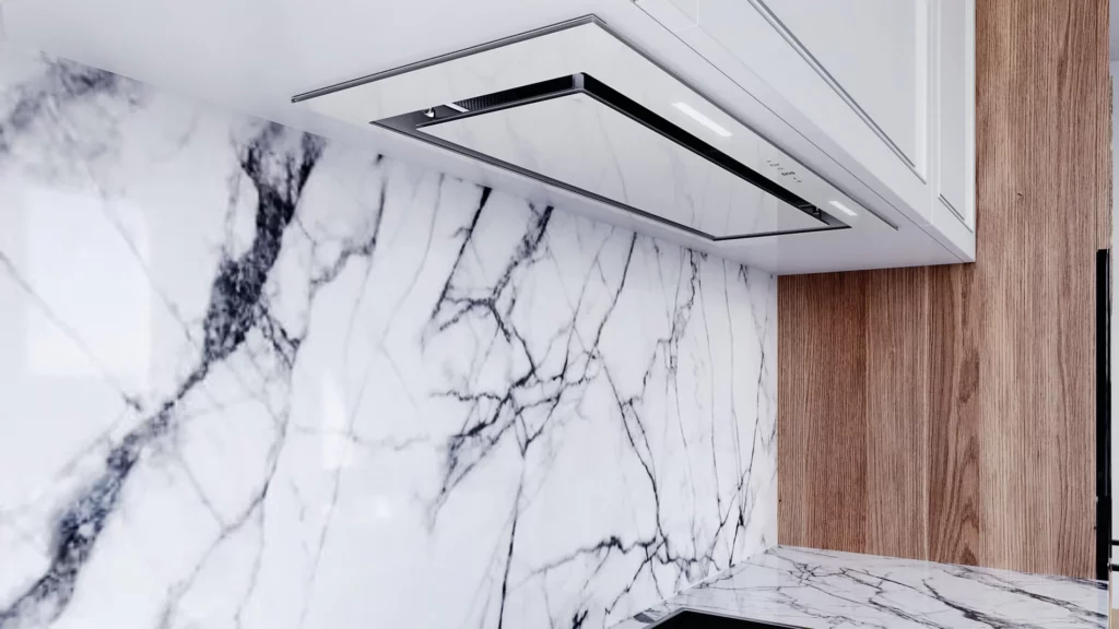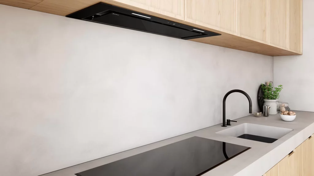 Okap bezsilnikowy do zabudowy, odpowiedni do połączenia z wentylatorem dachowym VILPE i działania w systemie Cichej Kuchni.