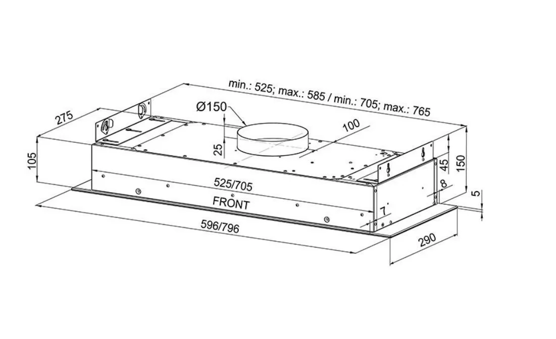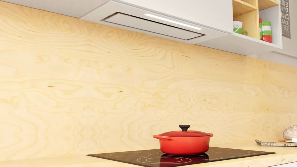 Okap bezsilnikowy do zabudowy, odpowiedni do połączenia z wentylatorem dachowym VILPE i działania w systemie Cichej Kuchni.