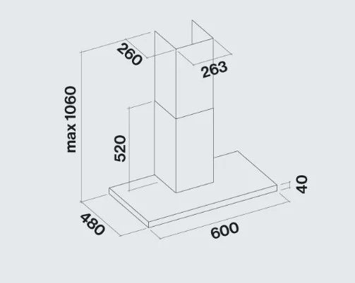 * orientacyjna wydajność dla najwyższej prędkości pracy silnika (dla spadku ciśnienia 50 Pa, co odpowiada przykładowej długości przewodu wentylacyjnego pomiędzy okapem a wentylatorem na dachu ok. 5 mb)