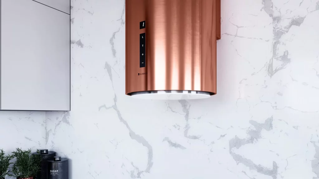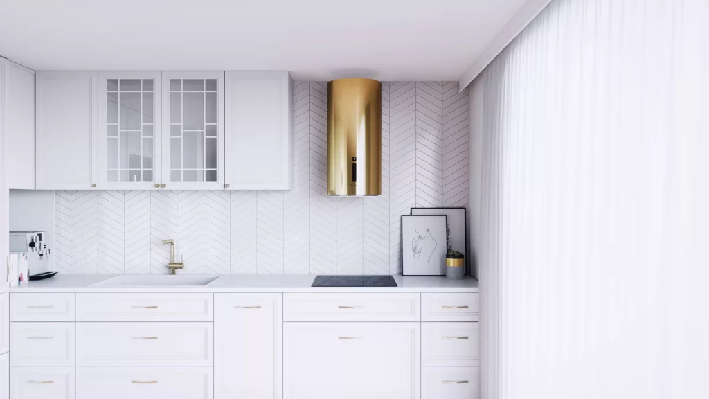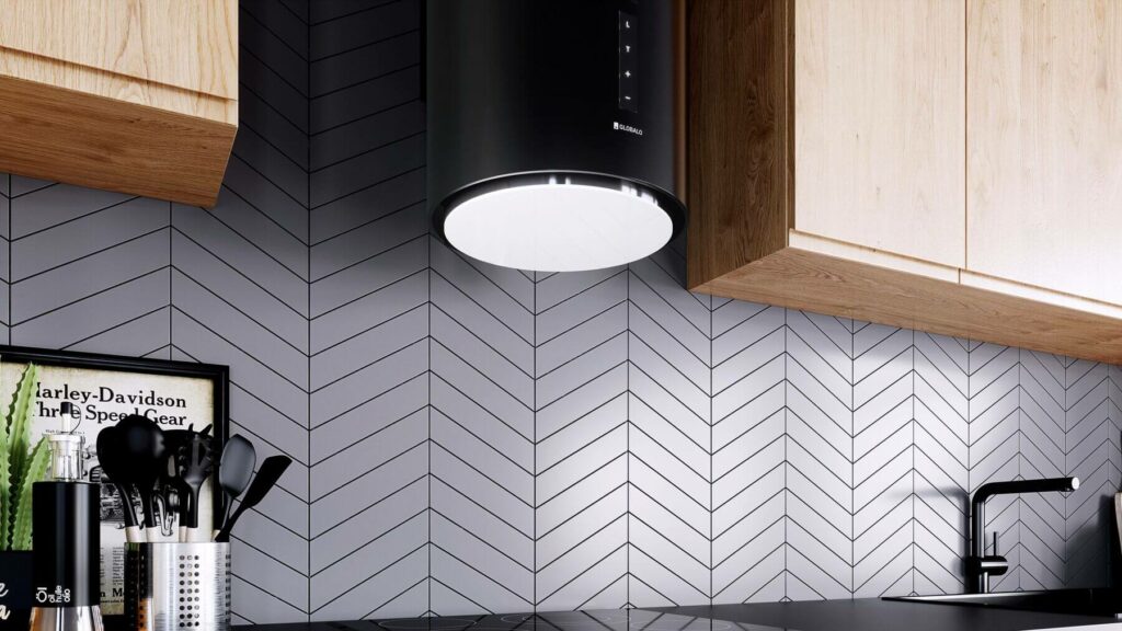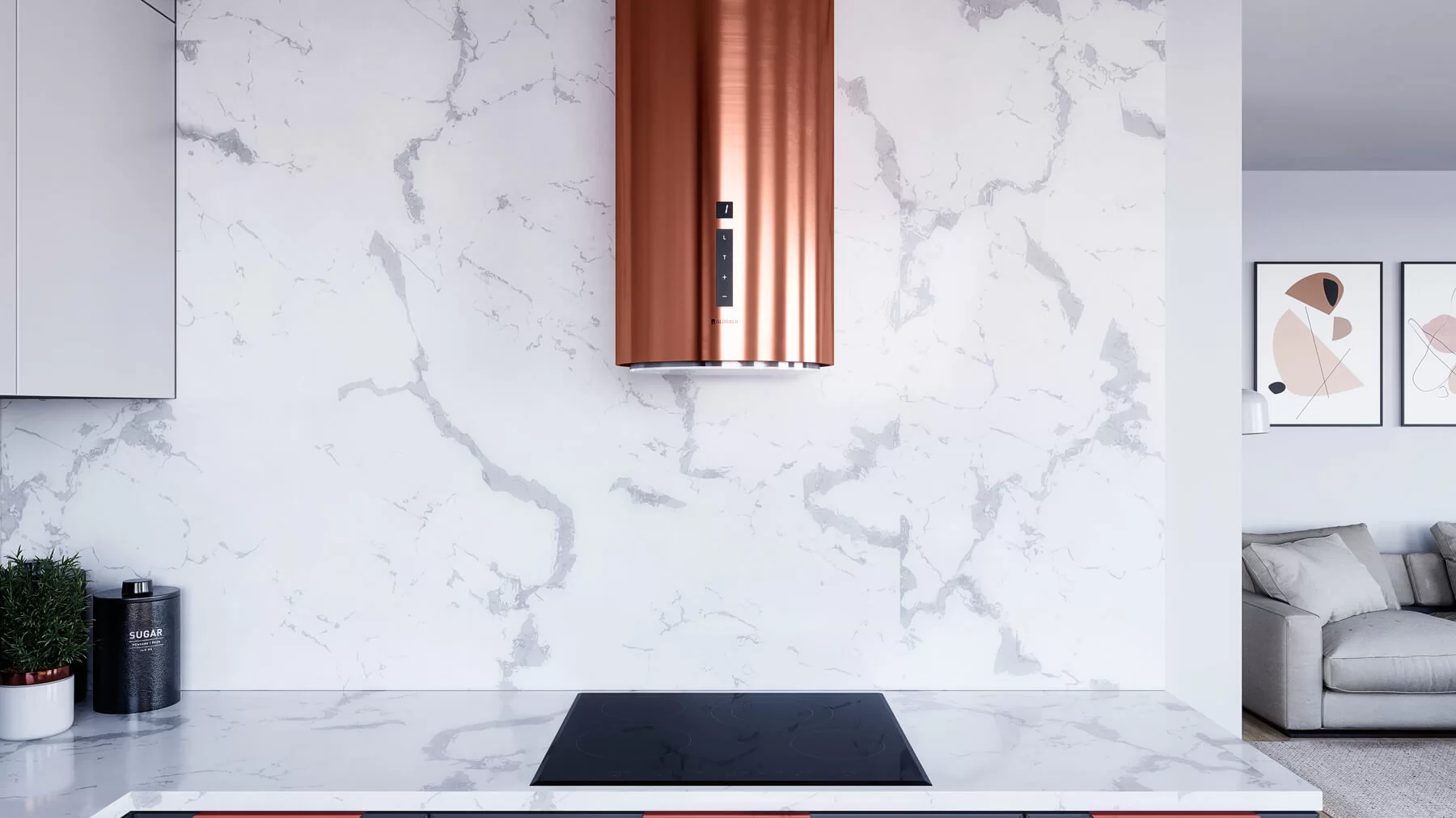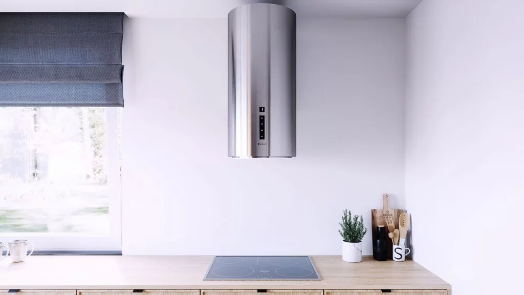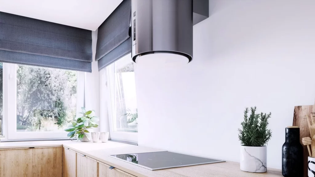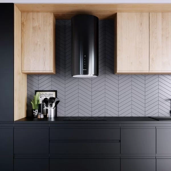 Okap bezsilnikowy w wersji ściennej odpowiedni do połączenia z wentylatorem dachowym VILPE i działania w systemie Cichej Kuchni.