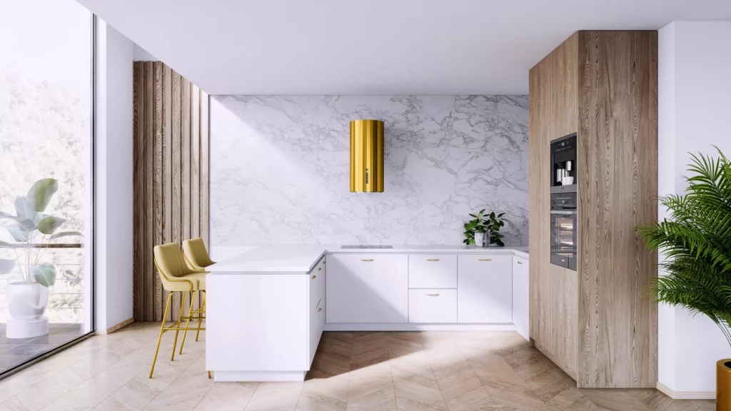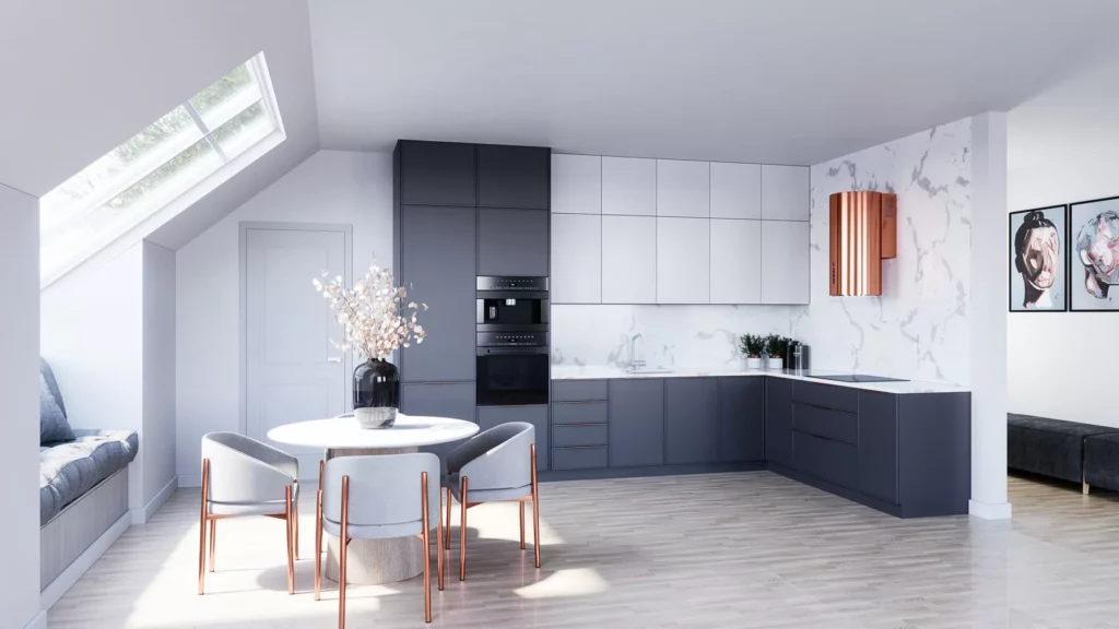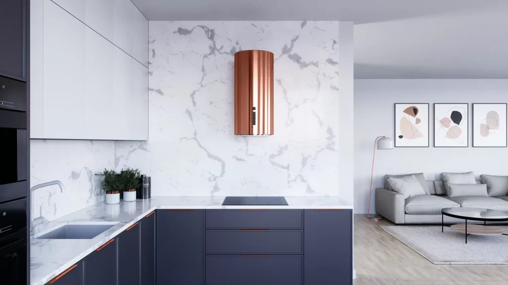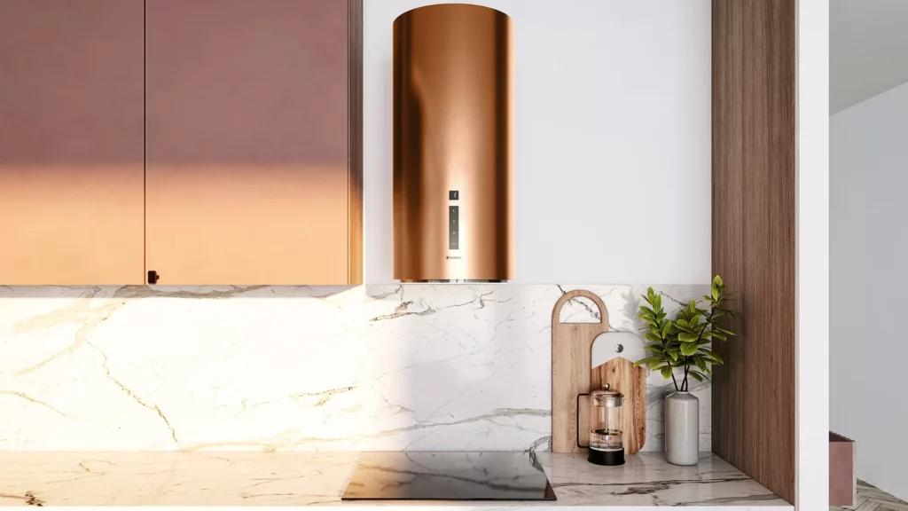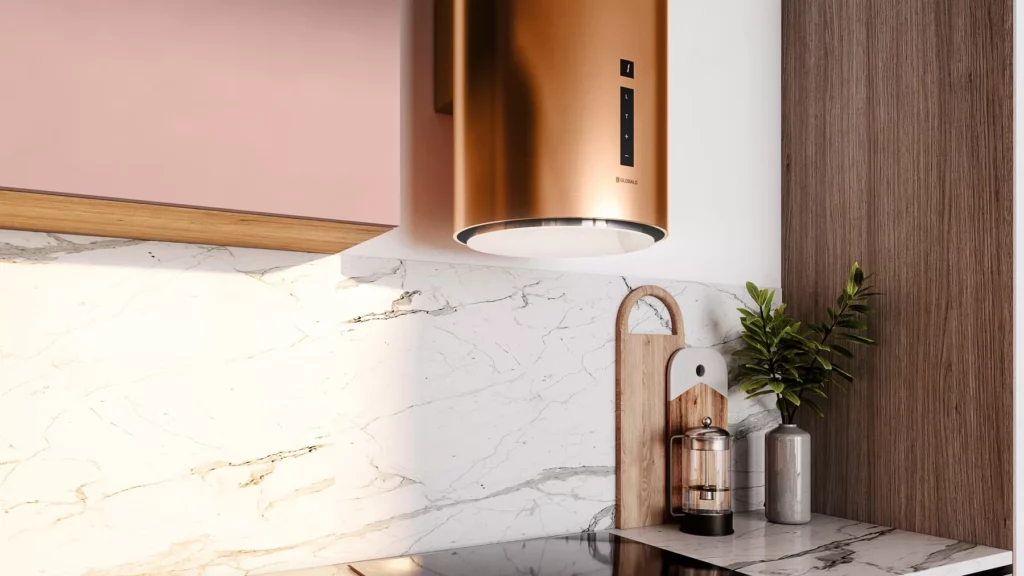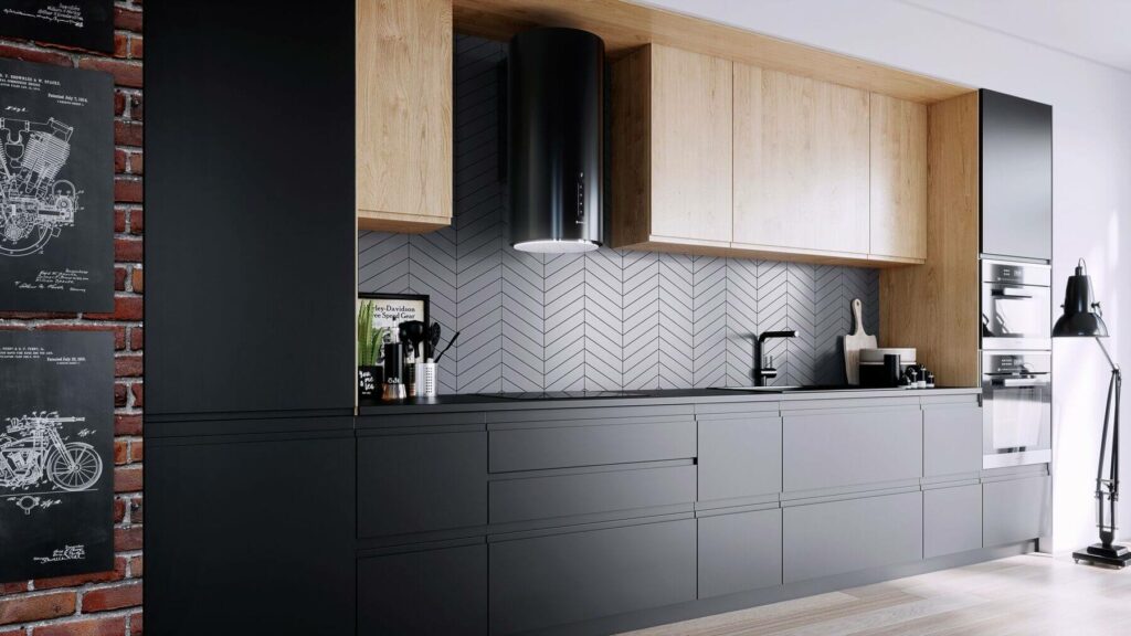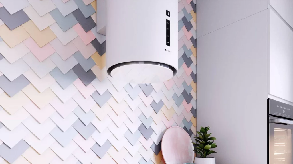 Okap bezsilnikowy w wersji ściennej odpowiedni do połączenia z wentylatorem dachowym VILPE i działania w systemie Cichej Kuchni.