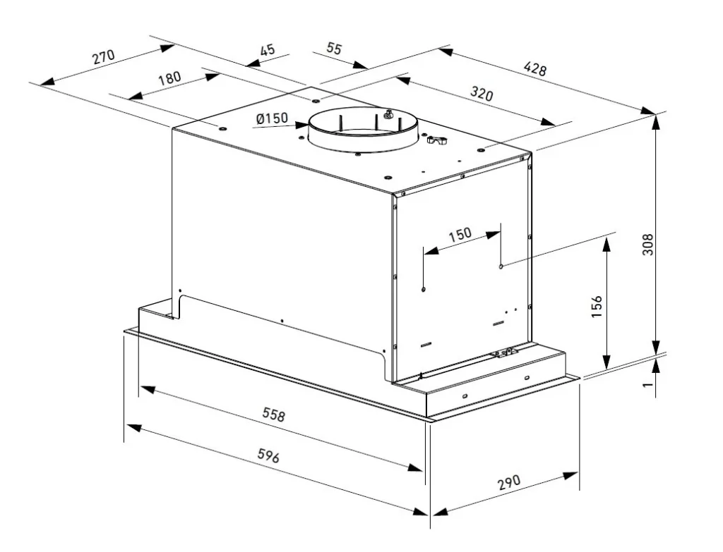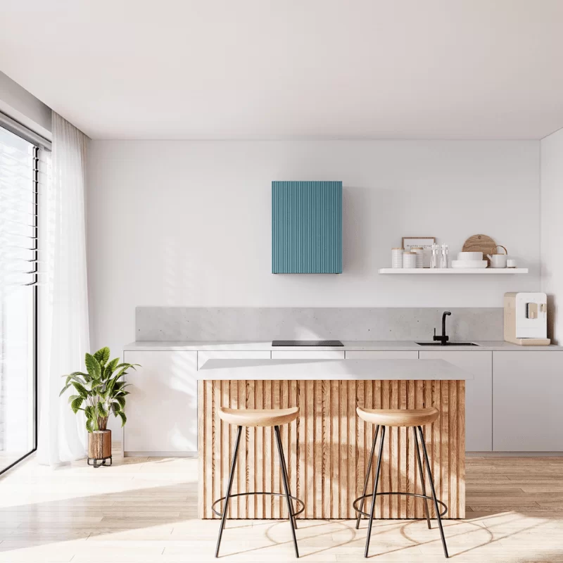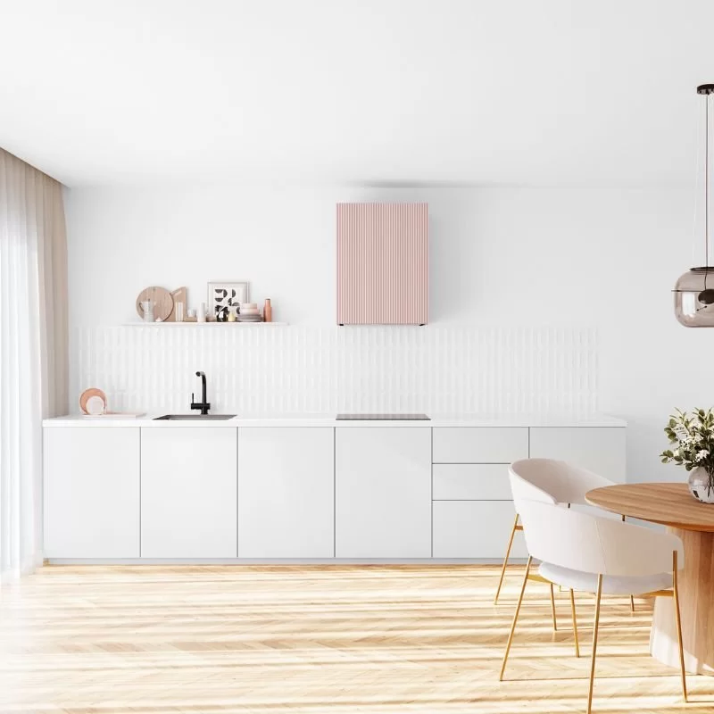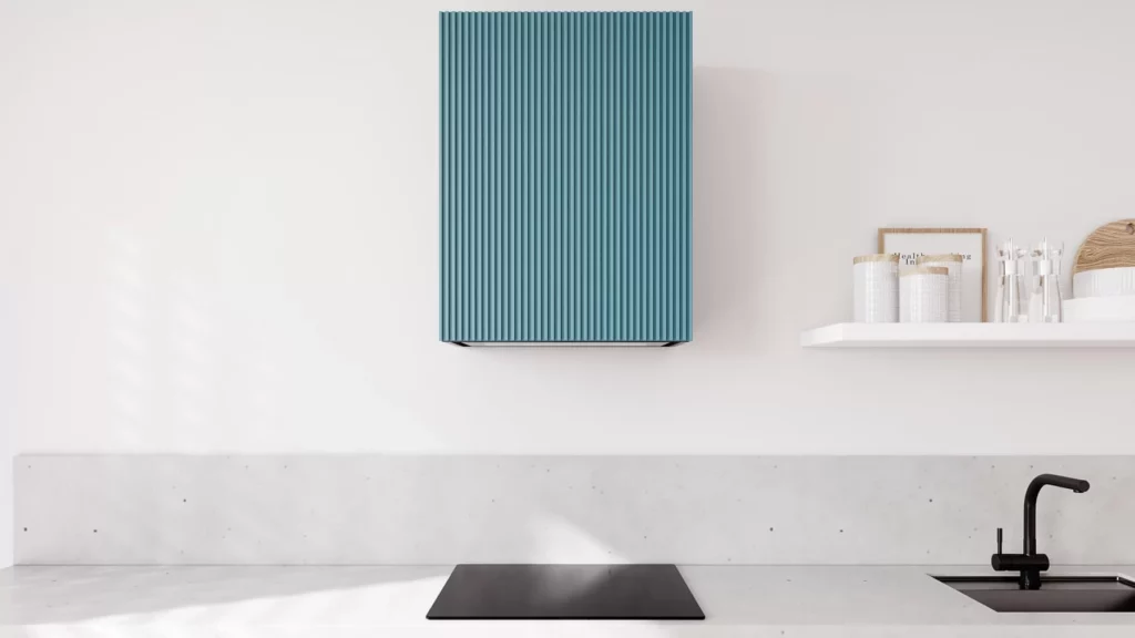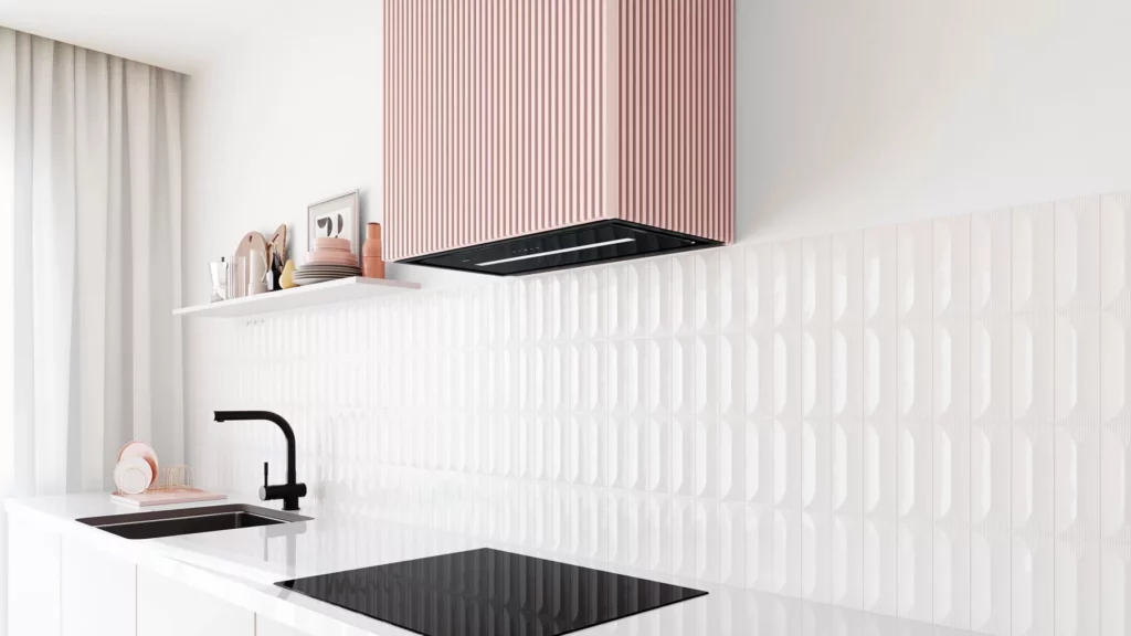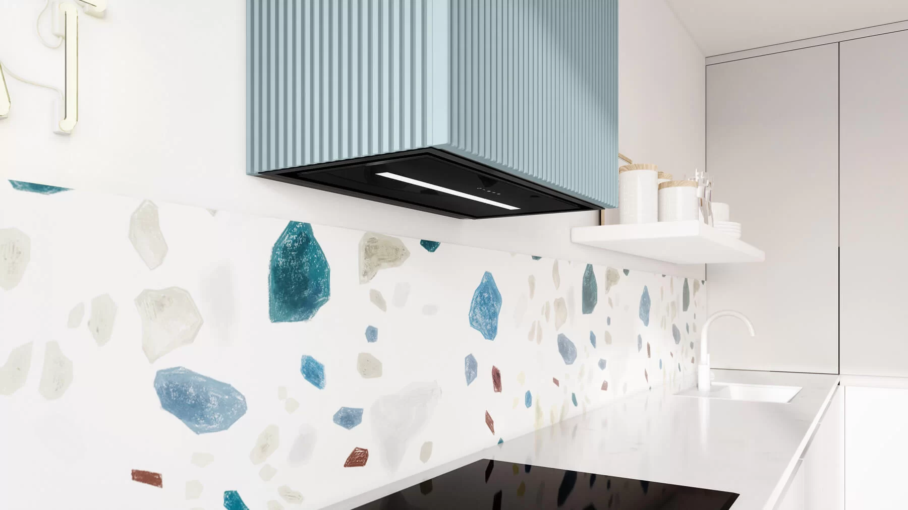 Okap bezsilnikowy w wersji ściennej odpowiedni do połączenia z wentylatorem dachowym VILPE i działania w systemie Cichej Kuchni.