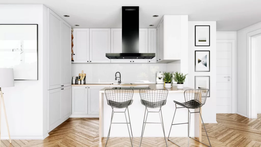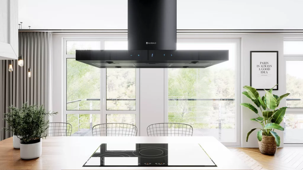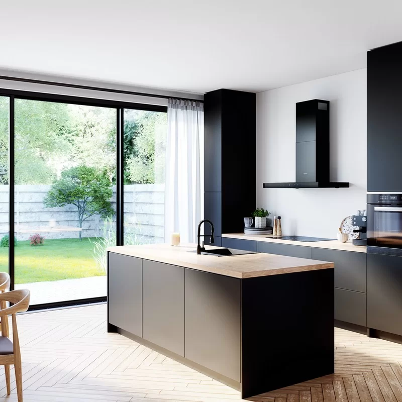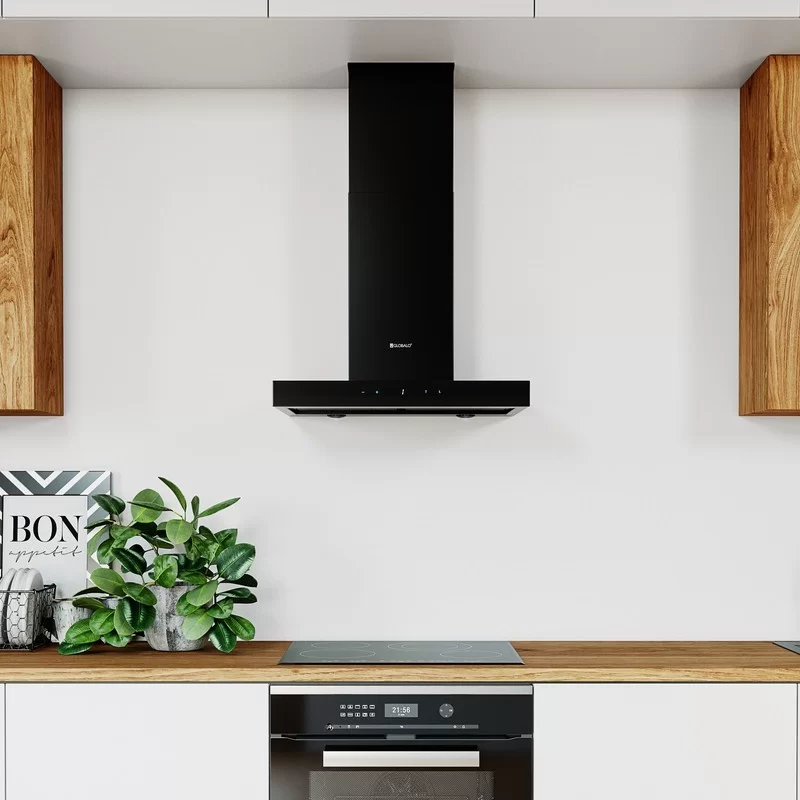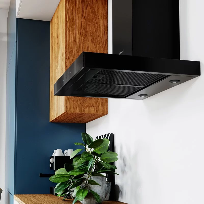 Okap bezsilnikowy w wersji ściennej odpowiedni do połączenia z wentylatorem dachowym VILPE i działania w systemie Cichej Kuchni.