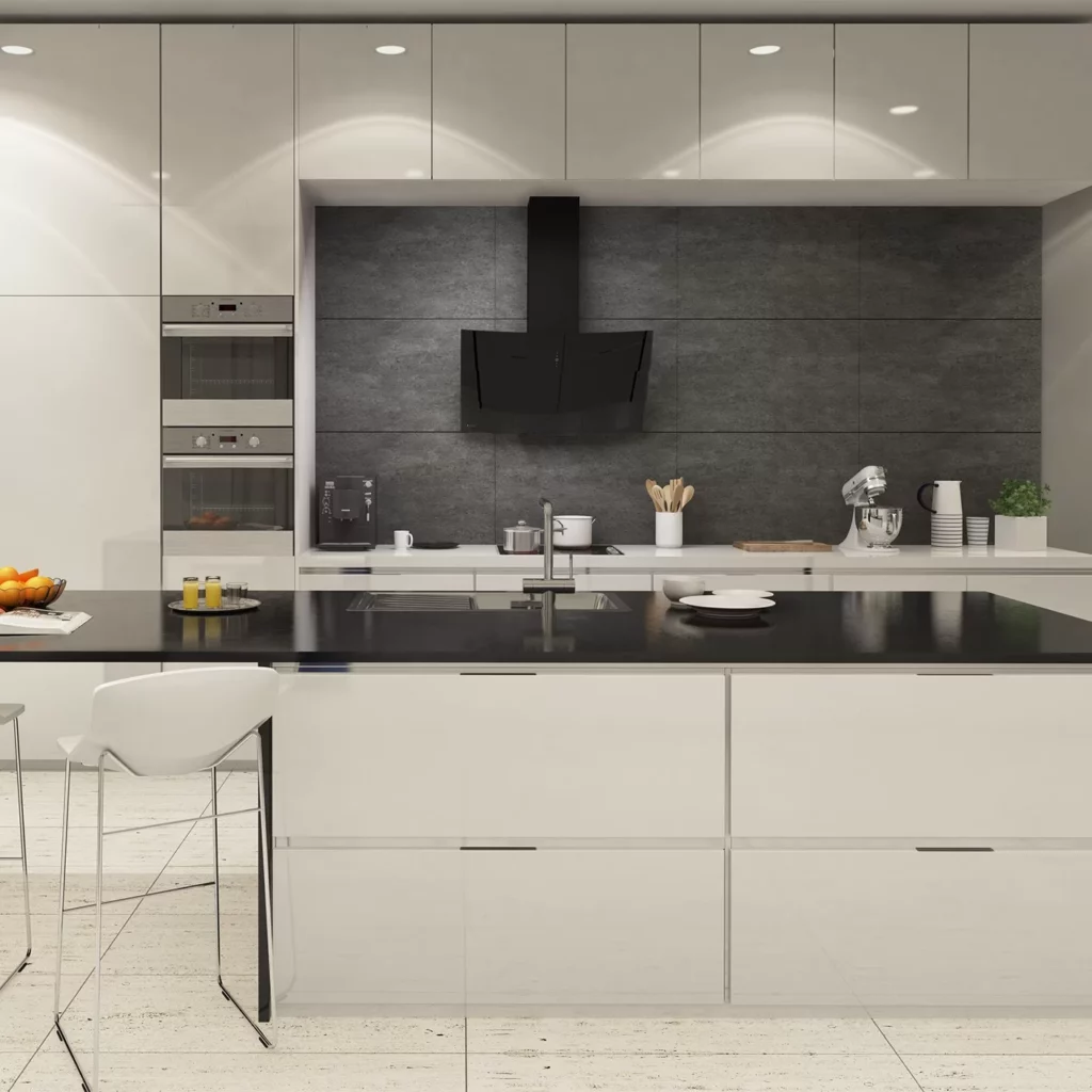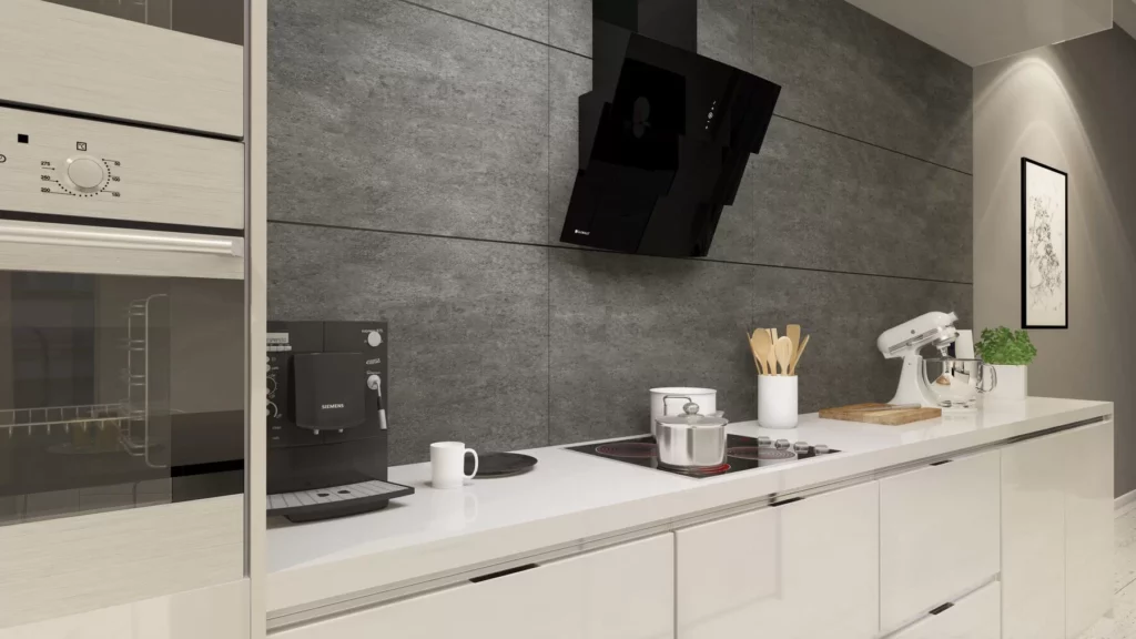 Okap bezsilnikowy w wersji ściennej odpowiedni do połączenia z wentylatorem dachowym VILPE i działania w systemie Cichej Kuchni.