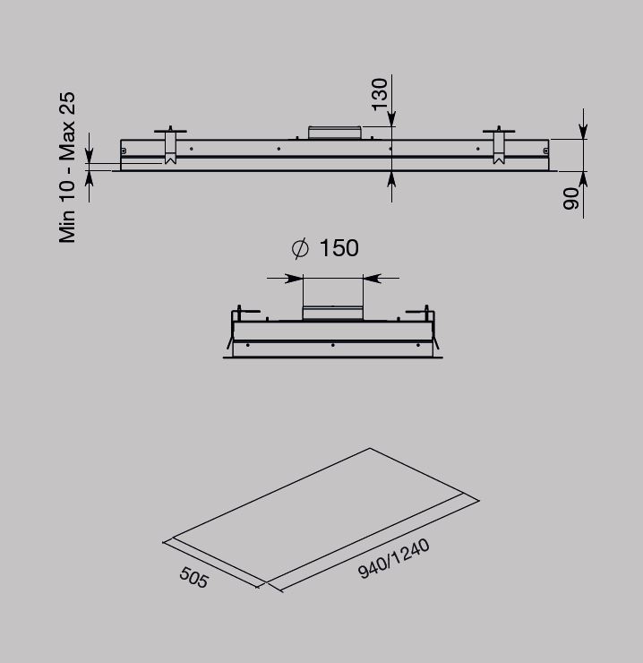 * orientacyjne wydajności dla najwyższej prędkości pracy silnika (dla spadku ciśnienia 50 Pa, co odpowiada przykładowej długości przewodu wentylacyjnego pomiędzy okapem a wentylatorem na dachu ok. 5 mb)