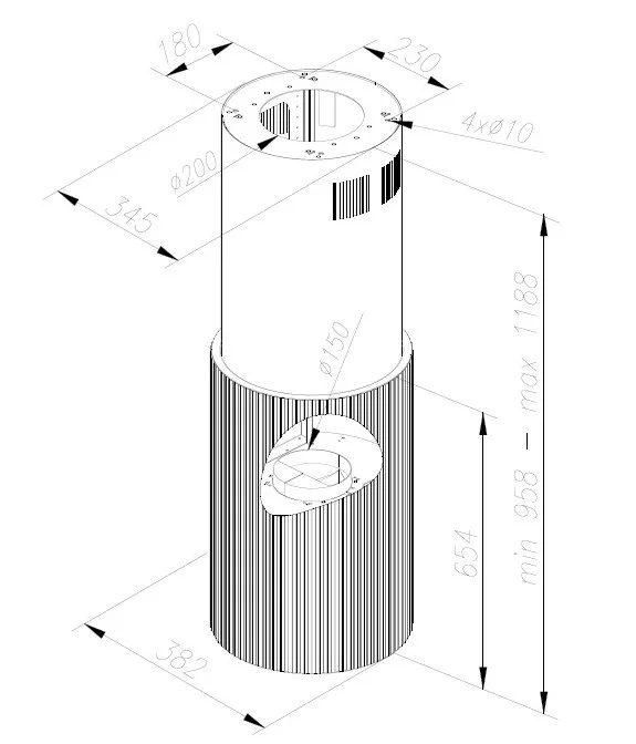 Okap bezsilnikowy w wersji wyspowej odpowiedni do połączenia z wentylatorem dachowym VILPE i działania w systemie Cichej Kuchni.