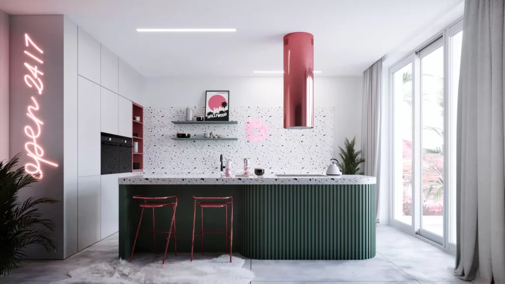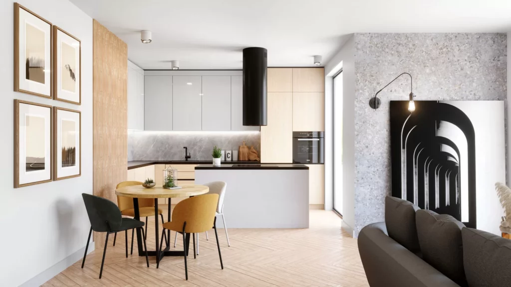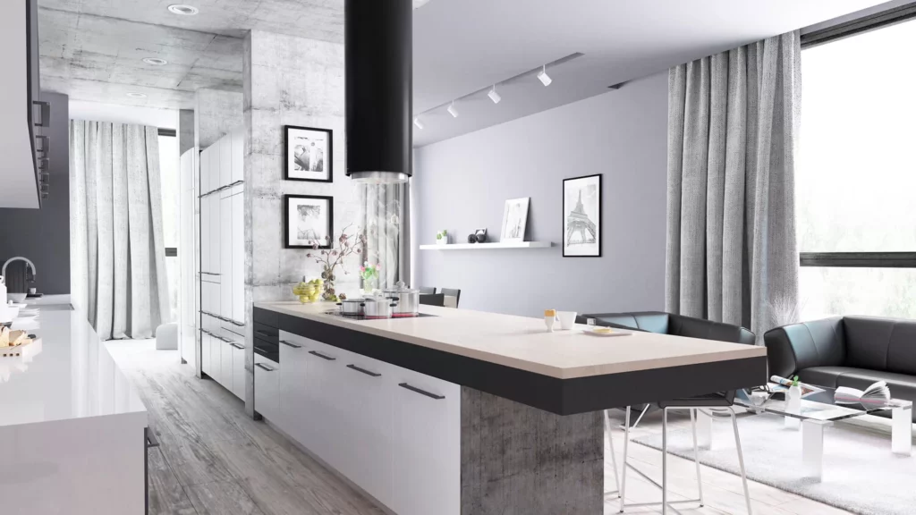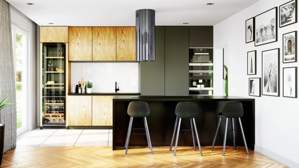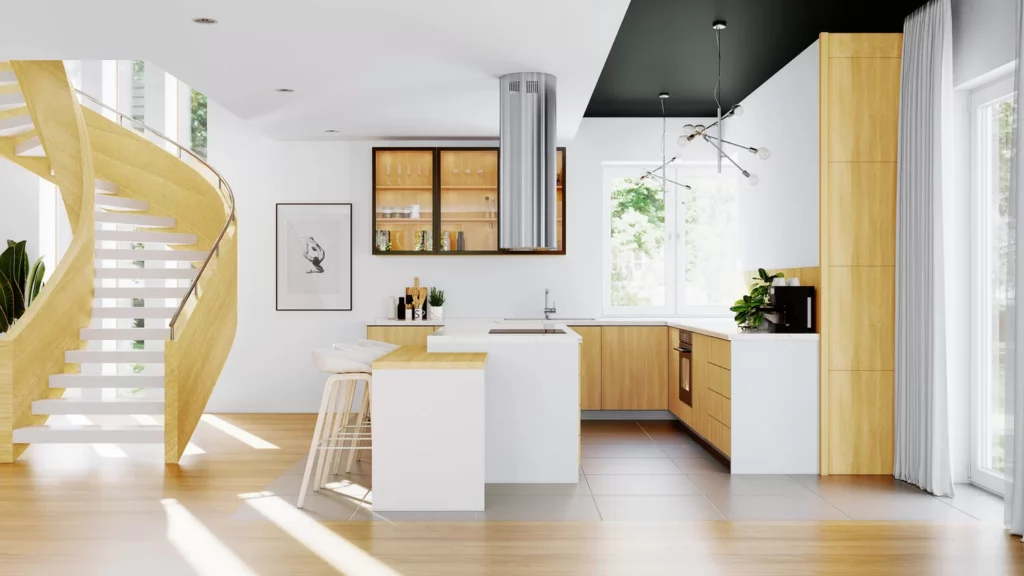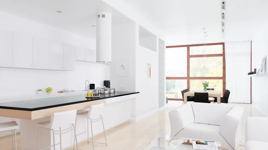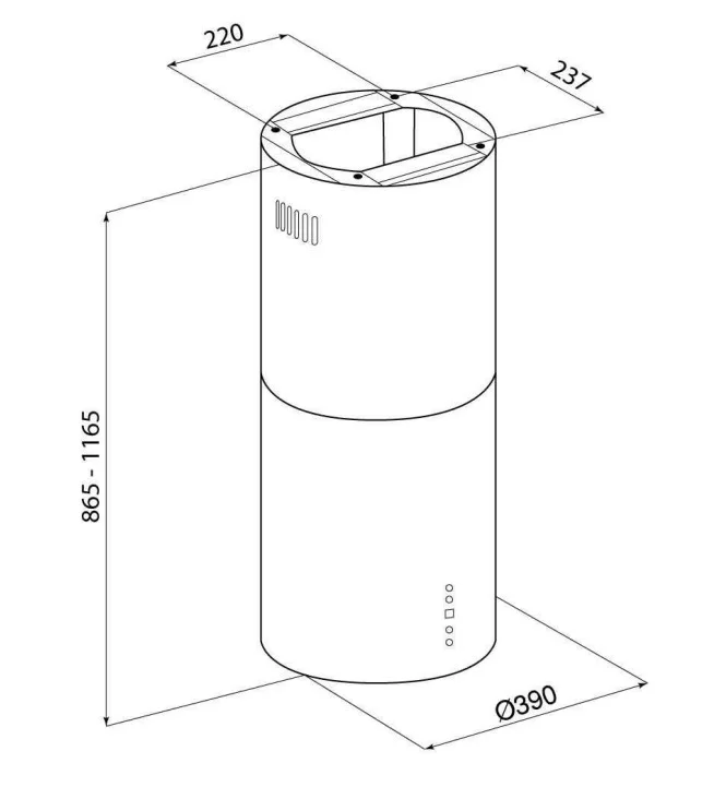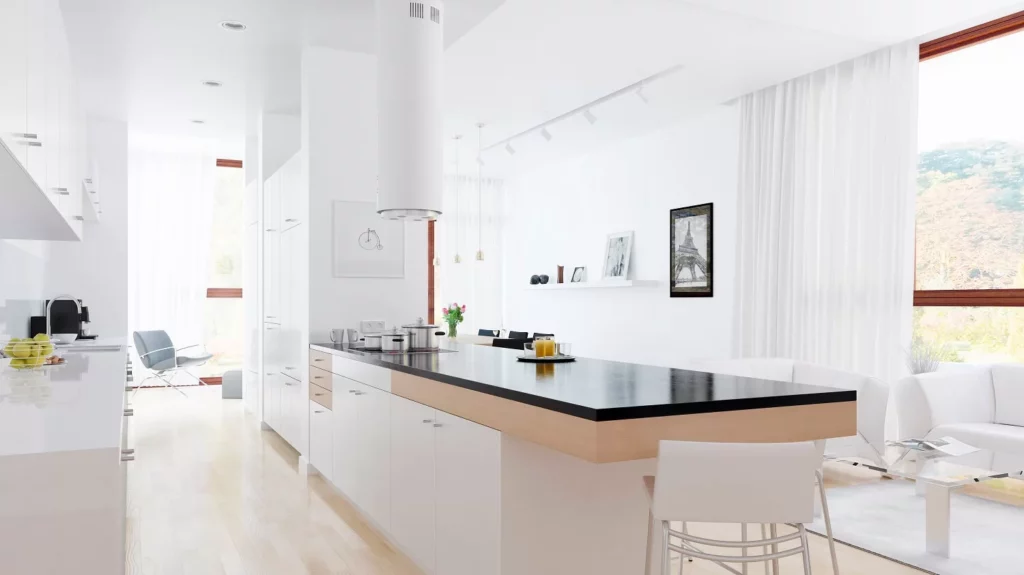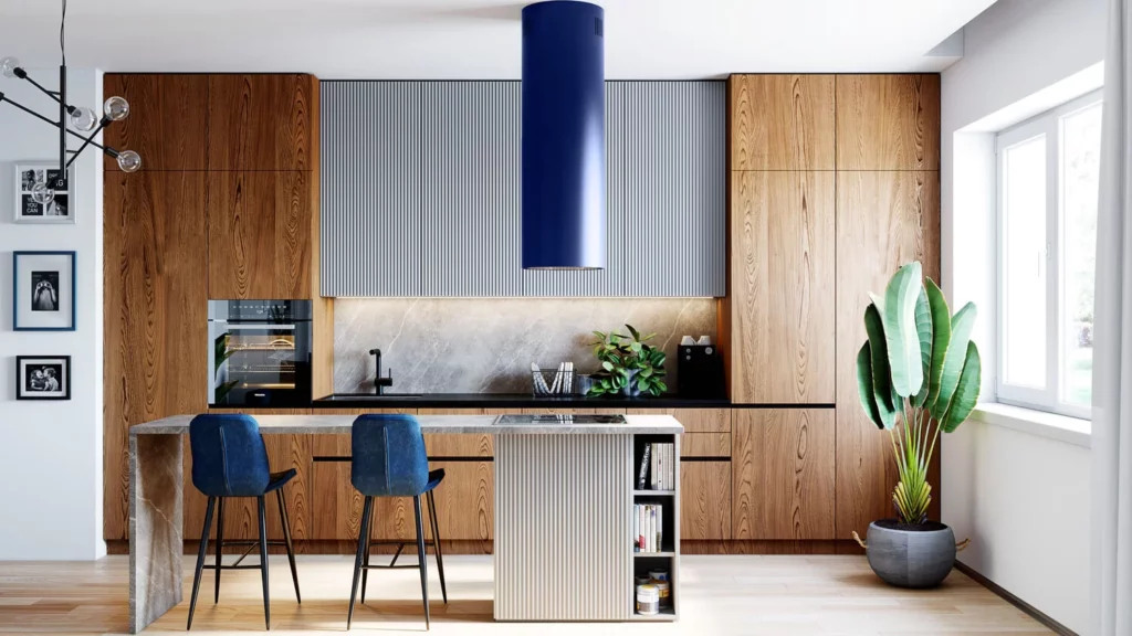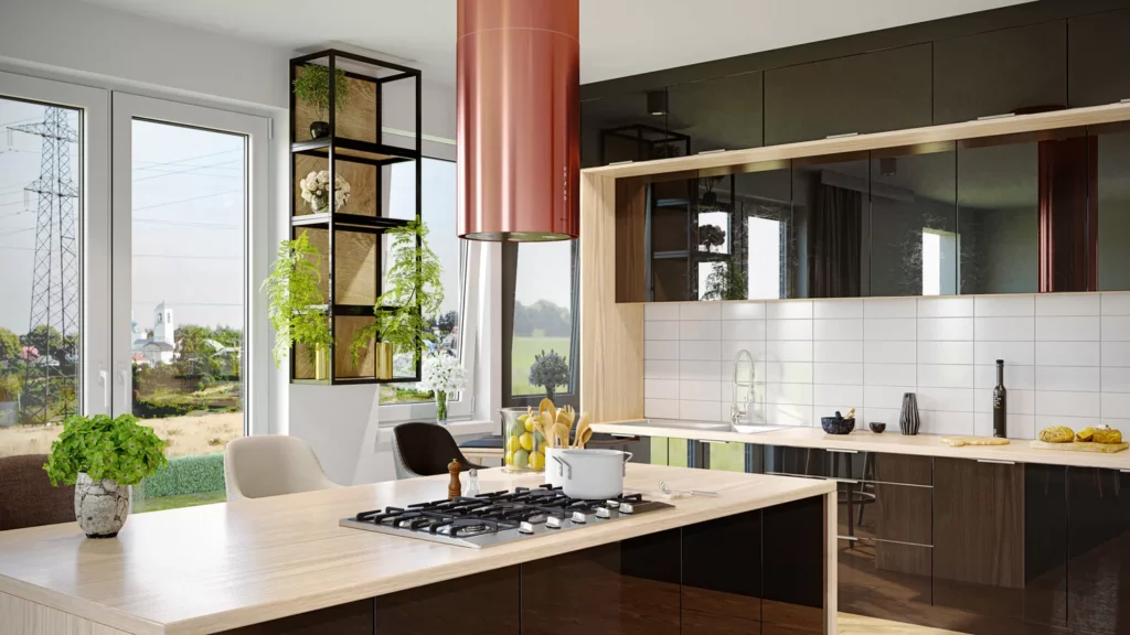 Okap bezsilnikowy w wersji wyspowej odpowiedni do połączenia z wentylatorem dachowym VILPE i działania w systemie Cichej Kuchni.