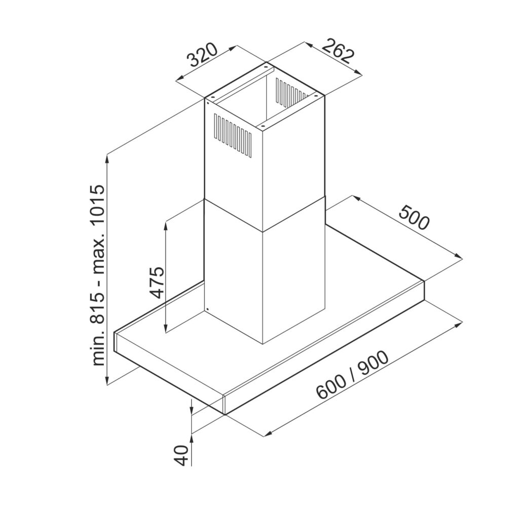 Okap bezsilnikowy w wersji wyspowej odpowiedni do połączenia z wentylatorem dachowym VILPE i działania w systemie Cichej Kuchni.