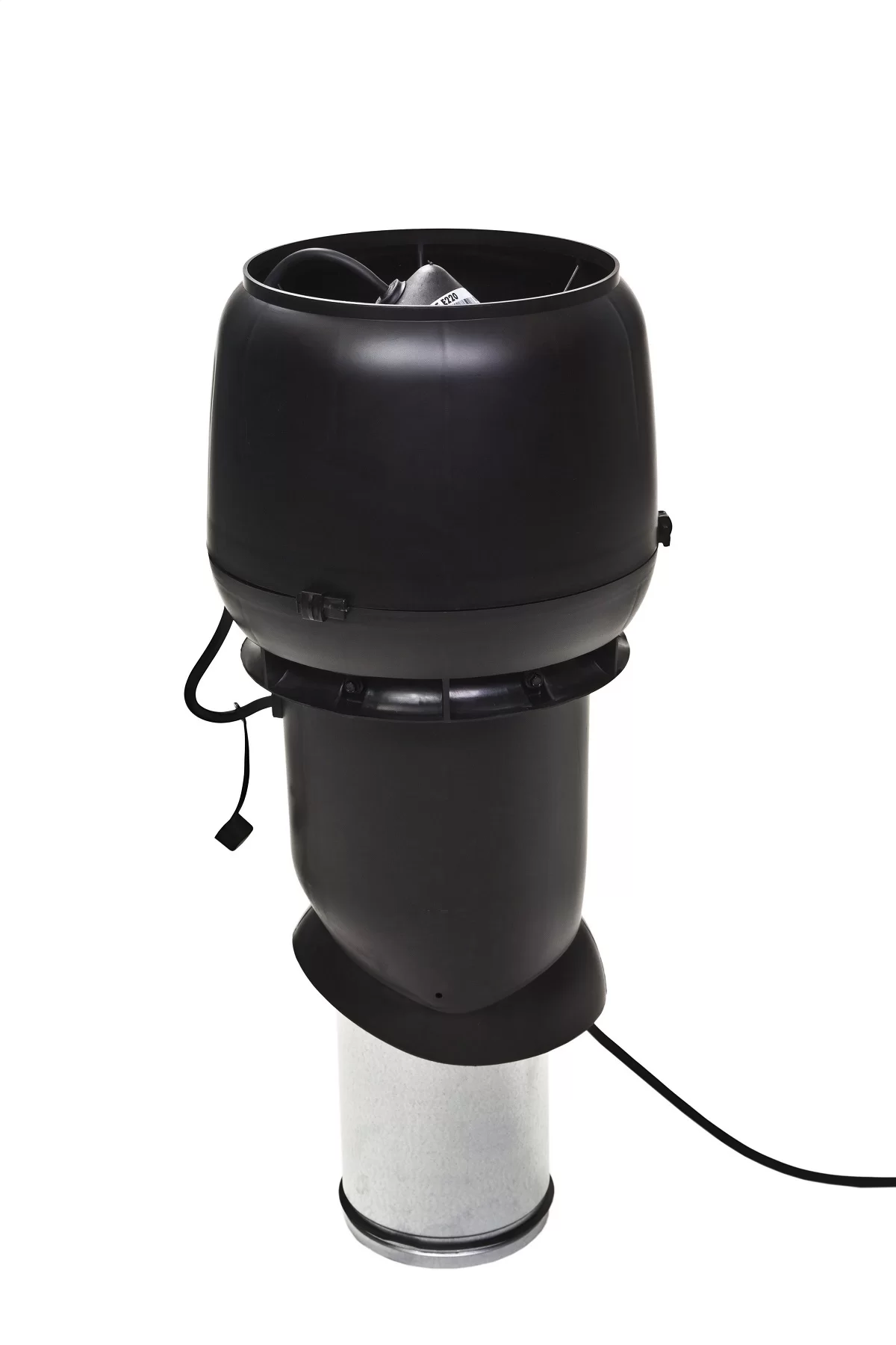 Wentylator dachowy E220/160/500. Wymiary: Wysokość wentylatora ponad dach około 500mm. Montaż: Przeznaczony do montażu w połaci dachu skośnego lub płaskiego.
