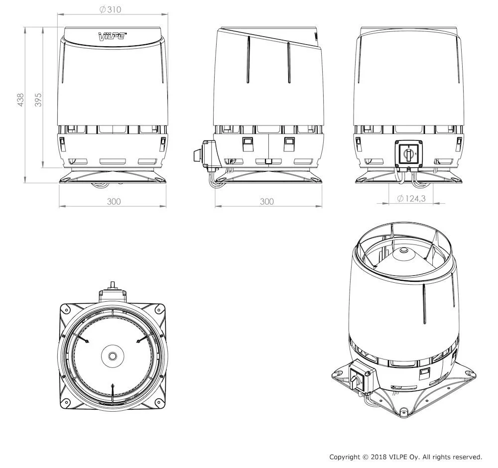 Wentylator dachowy Eco FLOW 125S. Wymiar: Płyta montażowa o wymiarze 300x300mm (powierzchnia montażowa musi być co najmniej tego rozmiaru). Montaż: na dukcie wentylacyjnym lub przewodzie wentylacyjnym. Montowany na płaskim podłożu wymaga zastosowania płyty montażowej która jest w zestawie.