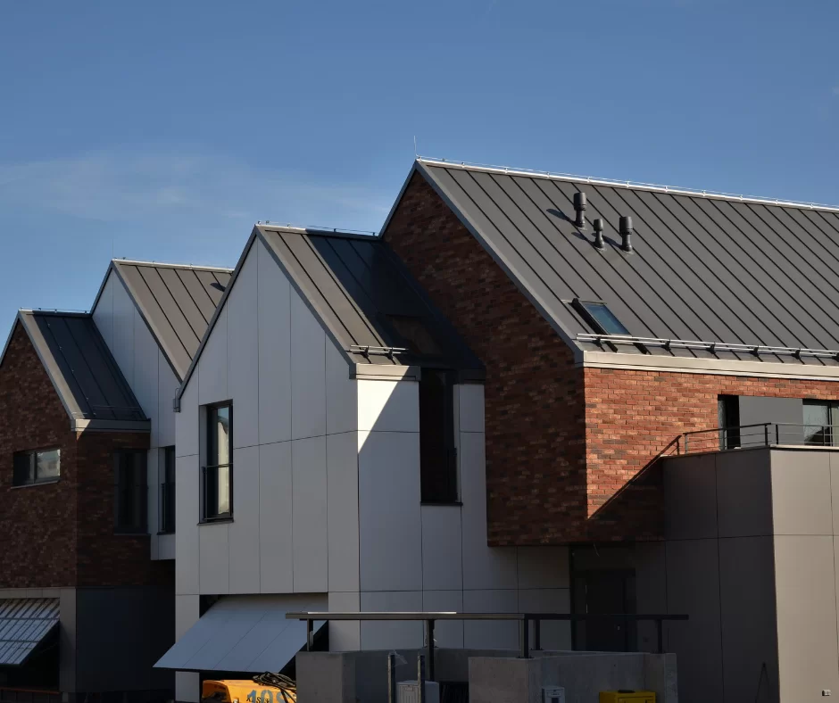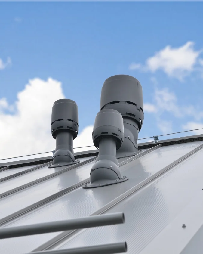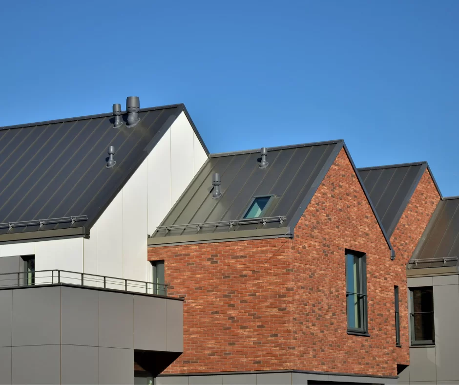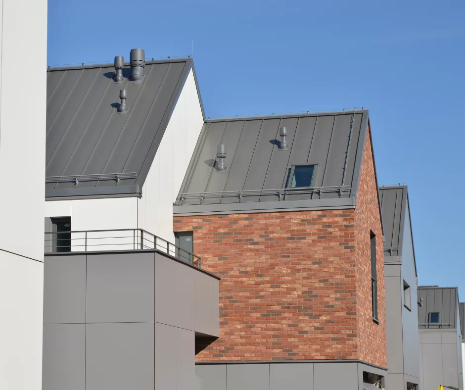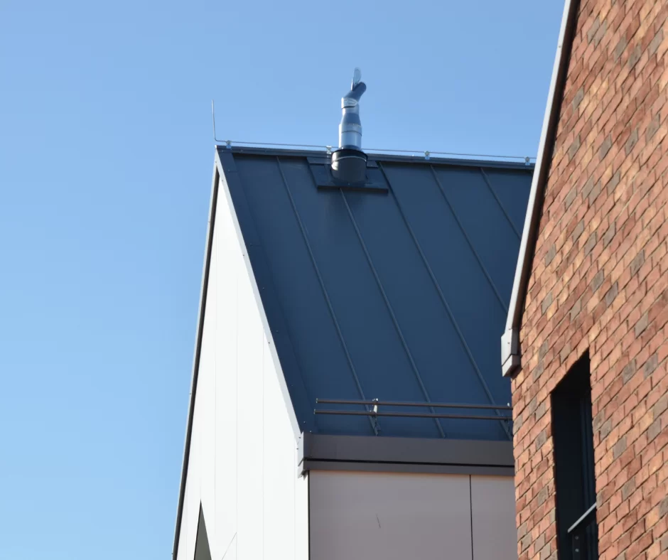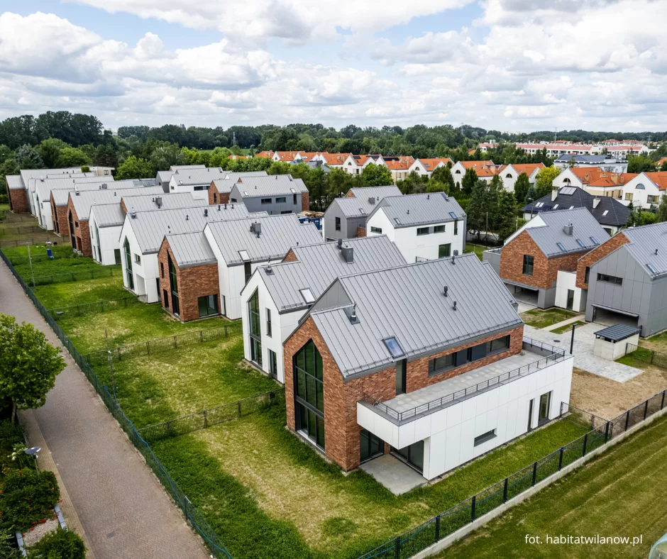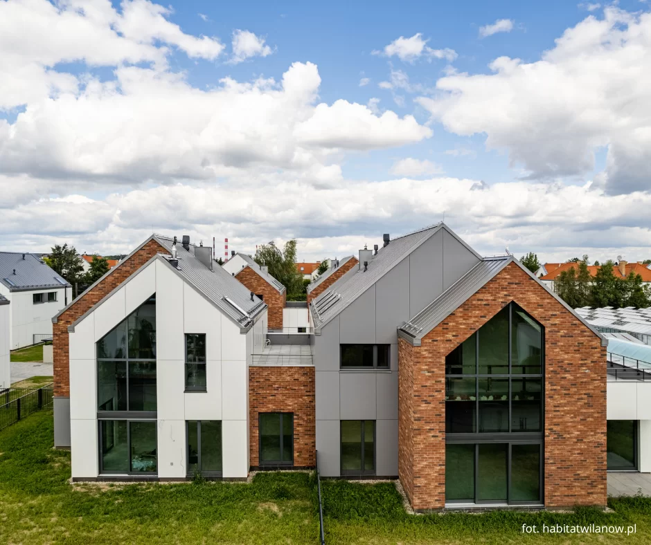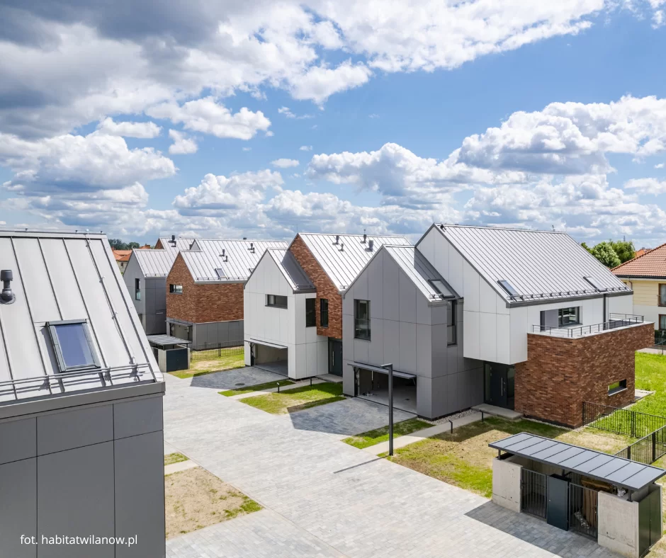 Na osiedlu Habitat w Wilanowie wprowadzono nowoczesne technologie, które dbają o jakość powietrza oraz niezawodne działanie instalacji. Wyrzutnie powietrza VILPE FLOW zainstalowane na dachach wspierają wydajną rekuperację, wentylację sanitarną oraz kuchenną. Urządzenia te są idealnie dopasowane do rodzaju pokrycia dachowego, co pozwala nie tylko zachować estetykę, lecz również gwarantuje długotrwałą wytrzymałość i skuteczność systemów.